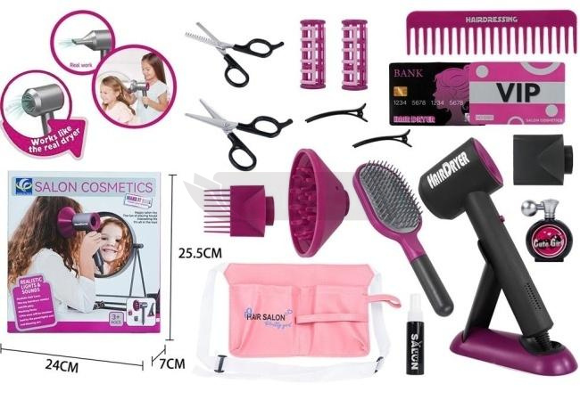 Odkryj Świat Fryzjerskich Przygód z Zestawem Salon Fryzjerski! Czy Twoje dziecko marzy o zostaniu stylistą fryzur? Ten fantastyczny zestaw do zabawy w salon piękności to idealny sposób na rozbudzenie kreatywności i wyobraźni! Zawiera wszystko, czego mały fryzjer potrzebuje do tworzenia niesamowitych fryzur dla swoich lalek, misiów, a może nawet dla Ciebie! Realistyczne Elementy dla Autentycznej Zabawy: W zestawie znajdziesz realistycznie wyglądającą suszarkę, która nie tylko przypomina prawdziwą, ale także wydaje dźwięki i lekko dmucha, co dodaje zabawie autentyczności i sprawia, że dziecko poczuje się jak w prawdziwym salonie. Bezpieczne dla dzieci nożyczki pozwolą na precyzyjne "cięcie" włosów, a różnorodne szczotki i grzebienie pomogą w rozczesywaniu i stylizacji. Mnogość Akcesoriów do Kreatywnych Stylizacji: Do dyspozycji małego stylisty są także dwa rodzaje wałków do tworzenia loków i fal, a także spinki do włosów, które utrzymają każdą fryzurę na miejscu. Dodatkowa nakładka - dyfuzor do suszarki urozmaici zabawę w stylizację. Praktyczny Fartuszek i Salonowe Dodatki: W zestawie znajduje się również różowy fartuszek z kieszonkami, w których mały fryzjer może przechowywać wszystkie swoje narzędzia, co dodaje profesjonalizmu zabawie. Atrapa karty kredytowej VIP i kosmetyków wprowadzą dodatkowy element zabawy w "dorosłych". Rozwój Wyobraźni i Zdolności Manualnych: Zabawa w salon fryzjerski nie tylko dostarcza mnóstwo radości, ale także rozwija wyobraźnię, kreatywność i zdolności manualne dziecka. Poprzez naśladowanie dorosłych i tworzenie własnych fryzur, dziecko uczy się planowania, koordynacji ruchów i wyrażania siebie. Idealny Prezent dla Małej Stylistki: Ten bogato wyposażony zestaw to doskonały pomysł na prezent dla dzieci w wieku od 3 lat. Zapakowany w kolorowe pudełko o wymiarach 24 x 25.5 x 7 cm, z pewnością wywoła uśmiech na twarzy każdej małej miłośniczki fryzjerstwa i zabawy w dom. Podaruj swojemu dziecku możliwość spełnienia marzeń o własnym salonie piękności!