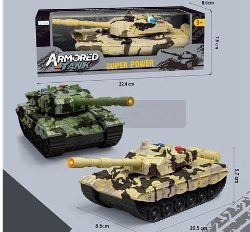 Pancerny Czołg Super Power - Poczuj Moc na Polu Bitwy! Przenieś się w fascynujący świat militariów z naszym pancernym czołgiem Super Power! Ta wspaniała zabawka została zaprojektowana z dbałością o detale, aby zapewnić młodym strategom niezapomniane chwile pełne akcji i kreatywnej zabawy. Realistyczny wygląd czołgu, z jego charakterystyczną sylwetką i detalami, pobudzi wyobraźnię każdego dziecka. Czołg wyposażony jest w efekty świetlne, które dodają zabawie jeszcze więcej emocji. Świecące elementy sprawią, że każda misja stanie się bardziej realistyczna i ekscytująca, zwłaszcza podczas zabawy w słabym oświetleniu. Dodatkowo, zabawka generuje efekty dźwiękowe, które imitują odgłosy prawdziwego pojazdu wojskowego, potęgując wrażenia z zabawy. Nasz pancerny czołg Super Power dostępny jest w dwóch atrakcyjnych wzorach kamuflażu, dzięki czemu każde dziecko może wybrać swój ulubiony wariant lub zebrać oba, by urozmaicić swoje wojskowe przygody. Solidna konstrukcja zapewnia trwałość zabawki, nawet podczas najbardziej dynamicznych akcji. Zabawka jest idealna dla dzieci powyżej 3 roku życia. Jej wymiary zostały starannie przemyślane, aby zapewnić komfortową i bezpieczną zabawę. Podaruj swojemu dziecku pancerny czołg Super Power i obserwuj, jak rozwija swoje umiejętności strategiczne i kreatywność poprzez wciągającą zabawę! To doskonały pomysł na prezent, który zapewni wiele godzin fantastycznej rozrywki.