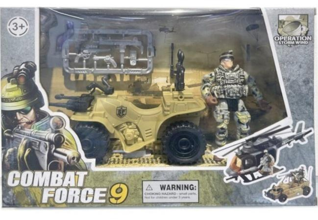 Wyrusz na ekscytującą misję z zestawem Combat Force 9! Ten dynamiczny zestaw przeniesie Twoje dziecko w sam środek akcji specjalnych. W opakowaniu znajdziesz figurkę doskonale wyposażonego żołnierza w kamuflażu, gotowego do wykonania każdego zadania. Do jego dyspozycji jest quad w pustynnym kolorze, idealny do szybkiego przemieszczania się po polu bitwy. Dodatkowo, dołączone akcesoria takie jak broń i wyposażenie taktyczne pozwolą na jeszcze bardziej realistyczną zabawę. Zabawka przeznaczona jest dla dzieci powyżej 3 roku życia. Zestaw "Combat Force 9 - Operacja Storm Wind" pobudza wyobraźnię, rozwija kreatywność i pozwala na odgrywanie różnorodnych scenariuszy akcji. Pamiętaj o ostrzeżeniu dotyczącym małych elementów - ryzyko zadławienia.