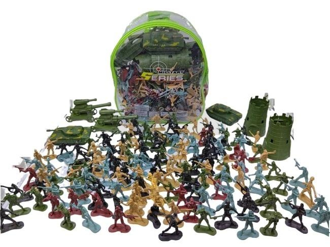 Wkrocz do Świata Taktycznych Bitew z Ogromnym Zestawem Małych Żołnierzyków! Przygotuj się na niezliczone godziny wciągającej zabawy strategicznej z naszym bogatym zestawem małych żołnierzyków. Ten imponujący komplet zawiera dużą ilość różnorodnych figurek żołnierzyków w różnych pozach i umundurowaniach, gotowych do akcji na Twoim własnym polu bitwy. Oprócz dzielnych piechurów, w zestawie znajdziesz również pojazdy wojskowe, takie jak czołgi, transportery opancerzone i inne maszyny bojowe, które dodadzą autentyczności każdej rozgrywce. Nie zabrakło także elementów fortyfikacyjnych, w tym wież strażniczych i barykad, pozwalających na budowanie złożonych linii obrony i planowanie skomplikowanych ataków. Ten wszechstronny zestaw pobudza wyobraźnię, rozwija zdolności strategicznego myślenia i zachęca do kreatywnej zabawy w grupie. Dzieci mogą odgrywać historyczne bitwy, wymyślać własne scenariusze konfliktów lub po prostu cieszyć się kolekcjonowaniem różnorodnych modeli wojskowych. Co więcej, cały zestaw jest zapakowany w praktyczny i wytrzymały plecak, co ułatwia przechowywanie wszystkich elementów i zabranie ich ze sobą w podróż czy do przyjaciół. Dzięki temu żaden żołnierzyk się nie zgubi, a porządek po zakończonej zabawie będzie dziecinnie prosty. Ten zestaw, to doskonały prezent dla każdego młodego fana militariów i gier strategicznych, gwarantując długie godziny fascynującej i rozwijającej rozrywki. Niech bitwa się rozpocznie!