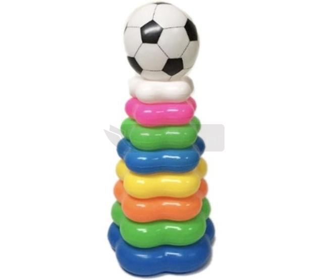 Wielobarwna Wieża do Układania z Piłką - Edukacyjna Zabawa dla Twojego Malucha! Przedstawiamy fantastyczną zabawkę, która łączy w sobie radość układania z elementami edukacyjnymi - kolorową wieżę z uroczą piłką na szczycie! Ta klasyczna zabawka została zaprojektowana z myślą o najmłodszych odkrywcach, aby wspierać ich rozwój poprzez interaktywną zabawę. Każdy element wieży ma intensywny i przyciągający wzrok kolor, co nie tylko stymuluje zmysł wzroku dziecka, ale także pomaga w nauce rozpoznawania barw. Różne rozmiary pierścieni zachęcają do logicznego myślenia i dopasowywania, ucząc sekwencji i porządku. Układanie pierścieni na podstawie to doskonałe ćwiczenie dla małych rączek, wspomagające rozwój motoryki małej, precyzji ruchów oraz koordynacji wzrokowo-ruchowej. Dziecko, próbując umieścić każdy element na swoim miejscu, uczy się cierpliwości i koncentracji. Na samym szczycie wieży znajduje się lekka piłka w klasycznym wzorze futbolówki, która dodatkowo uatrakcyjnia zabawę. Może służyć jako element do turlania, chwytania i samodzielnej zabawy, gdy wieża jest już ułożona. Wykonana z bezpiecznych i trwałych materiałów, wieża jest idealnym wyborem dla dzieci w wieku niemowlęcym i wczesnodziecięcym. Lekka konstrukcja sprawia, że jest łatwa do przenoszenia i manipulowania przez małe rączki. Zalety zabawki: Rozwija motorykę małą: Chwytanie i układanie pierścieni doskonale ćwiczy dłonie i palce. Wspiera koordynację wzrokowo-ruchową: Dziecko uczy się łączyć to, co widzi, z ruchami rąk. Uczy rozpoznawania kolorów: Intensywne barwy pierścieni stymulują zmysł wzroku i pomagają w nauce kolorów. Wprowadza w świat logicznego myślenia: Dopasowywanie rozmiarów pierścieni uczy sekwencji i porządku. Zabawna piłka na szczycie: Dodatkowy element urozmaicający zabawę. Bezpieczne materiały: Zabawka wykonana z myślą o bezpieczeństwie najmłodszych. Podaruj swojemu dziecku radość z nauki poprzez zabawę z tą wspaniałą, kolorową wieżą! To idealny prezent, który nie tylko bawi, ale także wspiera wszechstronny rozwój Twojego malucha.