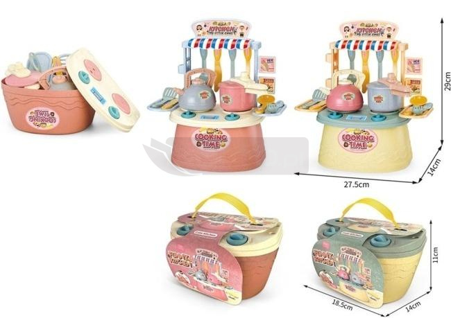 Odkryj Świat Kulinarnej Zabawy z Mini Kuchnią! Czy Twoje dziecko marzy o własnej kuchni i gotowaniu pysznych (oczywiście na niby!) posiłków? Nasza urocza Mini Kuchnia w Walizce to idealny sposób na rozwijanie wyobraźni i kreatywności maluchów. Ten kompaktowy i wszechstronny zestaw do zabawy przeniesie świat gotowania prosto do pokoju Twojego dziecka! Zestaw zawiera wszystko, co mały kucharz potrzebuje do rozpoczęcia swojej przygody: Kuchenkę z palnikami: Realistycznie wyglądająca płyta grzewcza zachęci do udawania gotowania ulubionych dań. Garnek z pokrywką: Idealny do "gotowania" zup i sosów. Czajnik: Niezbędny do przygotowania "gorących" napojów. Akcesoria kuchenne: Łopatki i inne przybory urozmaicą zabawę. Praktyczność i Mobilność: Największą zaletą tego zestawu jest jego forma praktycznej walizki. Po skończonej zabawie wszystkie elementy można łatwo spakować i zamknąć, co ułatwia utrzymanie porządku i sprawia, że kuchnia jest idealna do zabrania w podróż lub do dziadków. Wymiary rozłożonej kuchni to około 27.5 cm szerokości i 29 cm wysokości, co czyni ją idealną dla małych rączek. Złożona walizka ma kompaktowe wymiary około 18.5 cm szerokości, 14 cm głębokości i 11 cm wysokości. Dwa Atrakcyjne Warianty Kolorystyczne: Zestaw dostępny jest w dwóch uroczych wersjach kolorystycznych, dzięki czemu możesz wybrać tę, która najbardziej przypadnie do gustu Twojemu dziecku. Idealny Pomysł na Prezent: Mini Kuchnia, to wspaniały pomysł na prezent dla dzieci w wieku przedszkolnym i wczesnoszkolnym. Zabawka nie tylko zapewnia wiele godzin wciągającej zabawy, ale także rozwija zdolności manualne, koordynację wzrokowo-ruchową i umiejętność odgrywania ról. Podaruj swojemu dziecku radość z odkrywania pasji do gotowania!