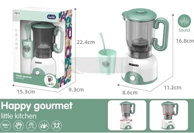 Happy Gourmet Little Kitchen Juicer - Rozbudź kulinarną wyobraźnię Twojego dziecka! Przedstawiamy interaktywny zabawkowy blender z serii Happy Gourmet Little Kitchen, który przeniesie Twoje dziecko w fascynujący świat przygotowywania pysznych napojów. Ten realistycznie wyglądający blender nie tylko zachęca do kreatywnej zabawy w kuchni, ale również rozwija zdolności manualne i wyobraźnię. Dzięki efektom dźwiękowym imitującym prawdziwe urządzenie, zabawa staje się jeszcze bardziej wciągająca i realistyczna. Dziecko może poczuć się jak prawdziwy barman przygotowujący orzeźwiające koktajle. W zestawie znajduje się blender oraz uroczy kubeczek z napisem "FRESH" i grafiką owoców, idealny do serwowania wymyślonych napojów. Kompaktowe wymiary sprawiają, że zabawka nie zajmuje dużo miejsca i łatwo ją przechowywać. Zabawka jest bezpieczna i wykonana z trwałych materiałów, idealna dla dzieci powyżej 18 miesiąca życia. To doskonały pomysł na prezent, który zapewni wiele godzin kreatywnej i edukacyjnej zabawy. Główne cechy: Realistyczny wygląd zabawkowego blendera. Efekty dźwiękowe uatrakcyjniające zabawę. W zestawie blender i kubeczek. Bezpieczne i trwałe materiały. Idealny dla dzieci powyżej 18 miesiąca życia. Rozwija wyobraźnię i zdolności manualne. Podaruj swojemu dziecku radość z odkrywania świata kuchni z Happy Gourmet Little Kitchen Juicer!