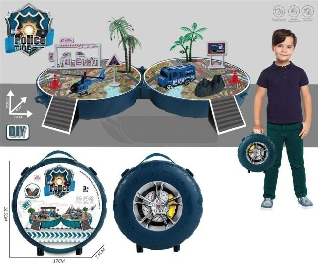Odkryj fascynujący świat policyjnych akcji z naszym interaktywnym zestawem do zabawy! Ten wyjątkowy zestaw kryje się w poręcznym opakowaniu w kształcie opony, które po rozłożeniu transformuje się w rozbudowaną bazę operacyjną. Mali stróże prawa znajdą tu wszystko, czego potrzebują do ekscytujących pościgów i misji ratunkowych: helikopter, radiowóz oraz różnorodne akcesoria, takie jak znaki drogowe i elementy scenerii. Zestaw został zaprojektowany z dbałością o detale, pobudzając wyobraźnię i zachęcając do kreatywnej zabawy. Dzieci mogą tworzyć własne scenariusze, odgrywać role policjantów i przeżywać niezliczone przygody. Kompaktowa forma opony sprawia, że zestaw jest łatwy do przechowywania i transportowania, dzięki czemu idealnie sprawdzi się zarówno w domu, jak i w podróży. Ten fantastyczny zestaw policyjny to doskonały pomysł na prezent dla dzieci w wieku od 3 lat. Zapewni im wiele godzin wciągającej i rozwijającej zabawy, a jednocześnie pomoże w rozwijaniu umiejętności społecznych i wyobraźni przestrzennej. Nie czekaj, spraw radość swojemu małemu bohaterowi już dziś!