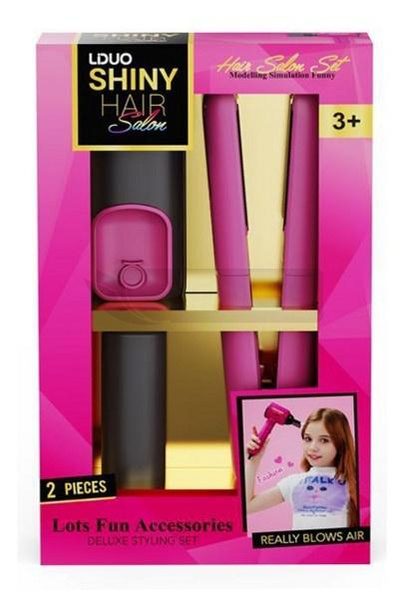 Prostownica dla dziewczynek. W zestawie znajduje się prostownica oraz stojak do prostownicy. Intuicyjna konstrukcja sprawia, że zabawka jest prosta w użyciu, co pozwala dzieciom na samodzielną zabawę i naukę. Prostownica działa na baterie typu 2xAAA. Baterie nie są załączone w zestawie. Prostownica świeci się światłem i wydaje realistyczne dźwięki. Zabawka zapakowana w kartonowe opakowanie. Zabawka dla dzieci od 3 lat. Podane wymiary są wymiarami opakowania.