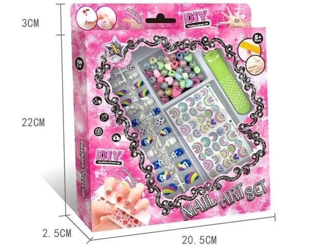 Odkryj radość tworzenia unikalnych stylizacji paznokci z naszym fantastycznym zestawem DIY Nail Art! Ten kompleksowy zestaw zawiera wszystko, czego potrzebujesz, aby zamienić swoje paznokcie w małe dzieła sztuki. Znajdziesz w nim różnorodne, gotowe do aplikacji naklejki na paznokcie z modnymi wzorami, mnóstwo kolorowych koralików do tworzenia trójwymiarowych efektów oraz praktyczny pilniczek, który pomoże nadać paznokciom idealny kształt. Zestaw jest łatwy w użyciu i bezpieczny dla dzieci powyżej 5 roku życia, rozwijając ich kreatywność i wyobraźnię. To doskonały pomysł na prezent i świetna zabawa na długie godziny!