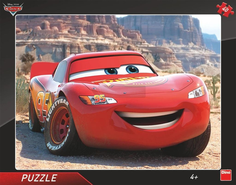 Motyw: Auta Cars - Zygzak McQueen Liczba elementów: 40 Wymiary układanki: 32 x 24 cm Wymiary układanki z ramką: 37 x 29 cm Rodzaj: Puzzle ramkowe - ułatwiają układanie Materiał: Wytrzymała tektura wysokiej jakości Dla kogo: Idealne dla najmłodszych fanów puzzli w wieku 4+ Producent: Dino Toys Certyfikat bezpieczeństwa CE