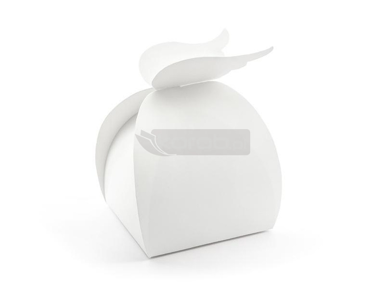 Pudełka wykonane z białego papieru w kształcie skrzydeł, szerokość ok. 8,5 cm, wysokość ok. 14,5 cm, głębokość ok. 8,5 cm.(1 op. / 10 szt.)