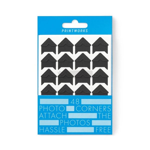 Zestaw narożników do osadzania zdjęć w Fotoalbumach marki PRINTWORKS. Dołączaj swoje zdjęcia bezproblemowo dzięki czarnym, matowym, przyklejanym narożnikom.
