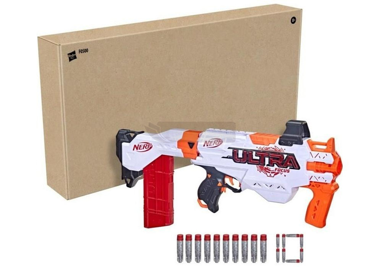 Blaster obsługuje innowacyjne strzałki NERF Ultra, które wyróżniają się unikalną aerodynamiką, lekką piankową strukturą oraz wydłużonym zasięgiem nawet do 36 metrów! Dzięki połączeniu precyzyjnej konstrukcji z nowoczesnymi rozwiązaniami, NERF Ultra Focus to idealna broń dla graczy, którzy cenią sobie szybkość reakcji i celność.