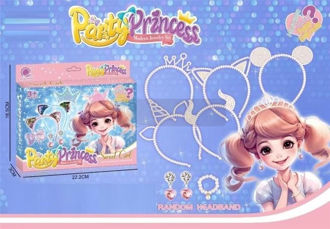 Podaruj swojej małej damie magiczny świat fantazji z zestawem biżuterii "Party Princess"! Ten uroczy komplet zawiera wszystko, czego potrzebuje, aby poczuć się jak prawdziwa księżniczka. W zestawie znajdziesz elegancką parę słodkich kolczyków, pasujący pierścionek oraz różnorodne opaski na głowę. Wśród opasek znajdują się urocze motywy. Wszystkie elementy są wykonane z bezpiecznych i trwałych materiałów, idealnych dla dzieci w wieku 3+. Zestaw "Party Princess" to doskonały pomysł na prezent, który rozbudzi wyobraźnię i zapewni wiele godzin wspaniałej zabawy. Opakowanie o wymiarach 22.2 cm x 16.5 cm x 3 cm sprawia, że zestaw jest łatwy do przechowywania i idealnie nadaje się na prezent. Uwaga: Opaska na głowę dołączana losowo.