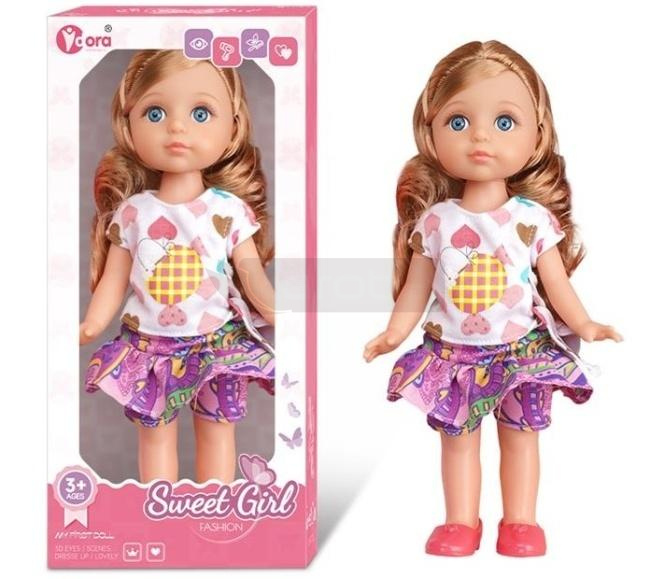 Przedstawiamy uroczą laleczkę Sweet Girl Fashion, która z pewnością skradnie serce Twojej pociechy! Ta śliczna lalka ma długie, kręcone blond włosy i duże, niebieskie oczy, które dodają jej uroku. Ubrana jest w stylową bluzeczkę z kolorowymi serduszkami i kwadratową aplikacją oraz fioletową spódniczkę w ciekawe wzory. Całość dopełniają różowe buciki. Laleczka Sweet Girl Fashion to nie tylko piękna zabawka, ale także doskonała towarzyszka kreatywnych zabaw. Dzięki niej dziewczynki mogą rozwijać swoją wyobraźnię, odgrywając różne scenki i tworząc własne historie. Wykonana z bezpiecznych i trwałych materiałów, jest idealna dla dzieci w wieku 3 lat i więcej. Podaruj swojej małej księżniczce tę wyjątkową lalkę i obserwuj, jak rozkwita jej kreatywność!