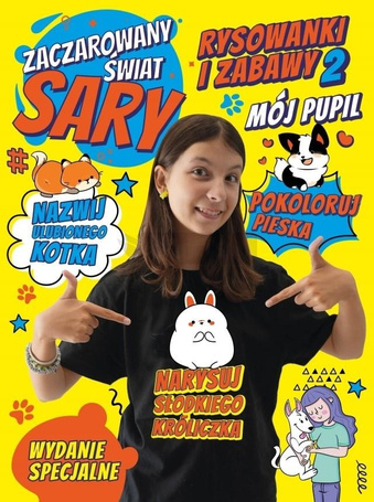 Książka aktywnościowa dla dziewczynek. Razem z Youtuberką Sarą dzieci poznają i rysują zwierzątka domowe wybierają swojego wymarzonego pupila. Kolorują pieski, kotki, króliki, świnki morskie i chomiki. Uzupełniają imiona, decydują o wyglądzie i charakterze zwierzątek, rysują własne rysunki. Rozwiązują też labirynty, zadania, szukają szczegółów. W trakcie zabawy dowiadują się jakie potrzeby mają zwierzątka i jak się nimi dobrze opiekować. Zabawa w kolorowanie piesków, kotków i króliczków. Do książki dołączone są trzy dodatki: 1 x saszetka Star Monsters 1 x Onepack SuperThings Mutant Battle, 1 x Onepack MojiPops.