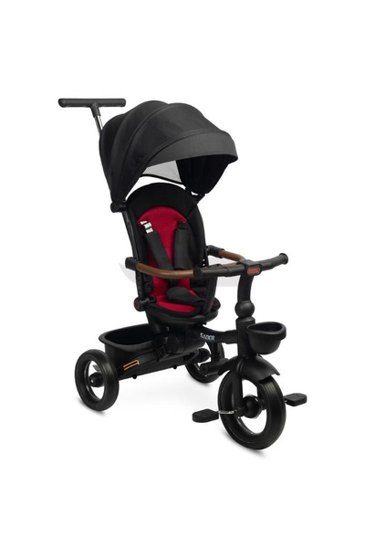 Pełna kontrola nad pojazdem dzięki dodatkowym, niezależnym hamulcom nożnym umieszczonym z tyłu. Trzystopniowa regulacja wysokości rączki (88-97 cm) zapewnia komfort rodzica, pozwalając na dostosowanie ustawień do jego wzrostu.