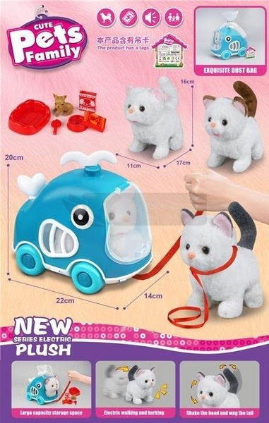 Przedstawiamy Państwu niezwykle uroczą i interaktywną zabawkę z serii "Cute Pets Family" - pluszowego kotka podróżującego w niebieskim samochodziku! Ta wspaniała zabawka łączy w sobie miękkość pluszu z fascynującymi funkcjami elektronicznymi, które zachwycą każde dziecko. Nasz milutki kotek potrafi elektrycznie chodzić i wydawać odgłosy, a także potrząsać głową i ogonem, co sprawia, że zabawa staje się niezwykle realistyczna i angażująca. Dodatkowo, niebieski samochodzik, którym podróżuje kotek, wyposażony jest w dużą przestrzeń do przechowywania, idealną na drobne skarby i akcesoria. W zestawie znajduje się również czerwona smycz, dzięki której dziecko może "wyprowadzać" swojego pluszowego przyjaciela na spacery. Zabawka zasilana jest bateriami (brak w zestawie), co zapewnia długie godziny wspaniałej zabawy. "Cute Pets Family" to nie tylko urocza maskotka, ale również interaktywny towarzysz, który rozwija wyobraźnię i zachęca do kreatywnej zabawy. Dzięki efektom dźwiękowym i ruchomym elementom, dziecko może wcielać się w rolę opiekuna zwierzątka, ucząc się odpowiedzialności i empatii. Cechy produktu: Pluszowy kotek o wymiarach około 17 cm x 11 cm x 16 cm. Niebieski samochodzik z miejscem do przechowywania o wymiarach około 22 cm x 20 cm. Funkcje elektryczne: chodzenie, szczekanie, potrząsanie głową i ogonem. W zestawie czerwona smycz. Zasilanie: baterie (brak w zestawie). Ta wyjątkowa zabawka to doskonały pomysł na prezent, który z pewnością wywoła uśmiech na twarzy każdego dziecka!
