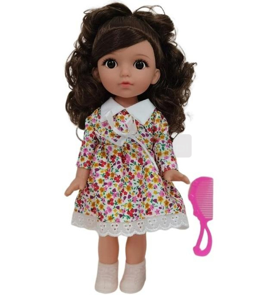 Przedstawiamy uroczą lalkę, która zachwyci każde dziecko! Ubrana w śliczną sukienkę w kolorowe kwiaty z eleganckim, białym kołnierzykiem i koronkowym wykończeniem, lalka prezentuje się niezwykle stylowo. Jej długie, kręcone, brązowe włosy idealnie nadają się do czesania i stylizacji, a dołączony różowy grzebień ułatwi tę zabawę. Lalka ma sympatyczną buzię i duże, brązowe oczy, które dodają jej uroku. Wykonana z bezpiecznych i trwałych materiałów, będzie wspaniałym towarzyszem zabaw na długie godziny, rozwijając wyobraźnię i zdolności manualne dziecka. Idealny pomysł na prezent!