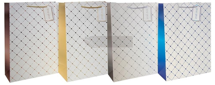 Torebka ozdobna PL-9 duża Złocona Serduszka, mix wzorów, wzór wysyłany losowo. Wymiary torebki po złożeniu 415x300x120mm.