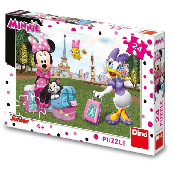 Puzzle z serii Myszką Minnie to propozycja dla dzieci powyżej 4 roku życia. Zestaw składa się z 24 elementów. Obrazek po ułożeniu ma wymiary 26 x 18 cm. Scenka przedstawia Myszkę Minnie wraz Daisy w Paryżu. Puzzle zostały wykonane z materiałów wysokiej jakości i są odporne na zginanie oraz uszkodzenia. Elementy układanki zostały wycięte laserowo, dzięki czemu można z łatwością je do siebie dopasować. Wyprodukowano w Czechach.