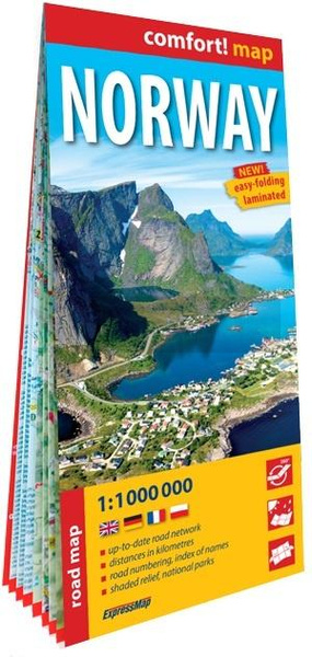 Dostojne górskie szczyty, spowite zapachem dorsza wioski rybackie, budzące respekt lodowce i zachłannie wcinające się w ląd fiordy. Przejażdżka wijącą się serpentynami Drogą Trolli. Z naszą dwustronnie laminowaną, wygodną w składaniu i trwałą mapą Norwegii samochodowa podróż po tym kraju będzie prawdziwą przyjemnością. Na mapie np stan dróg 2022, odcinki w budowie, atrakcje turystyczne, przyrodnicze i kulturowe, szczegółowa kategoryzacja i numeracja dróg, odległości drogowe w kilometrach, promy samochodowe, lotniska międzynarodowe, plastyczna rzeźba terenu, lasy, parki narodowe, opisy pasm górskich oraz najważniejszych szczytów, skorowidz miejscowości. Powyższy opis pochodzi od wydawcy.