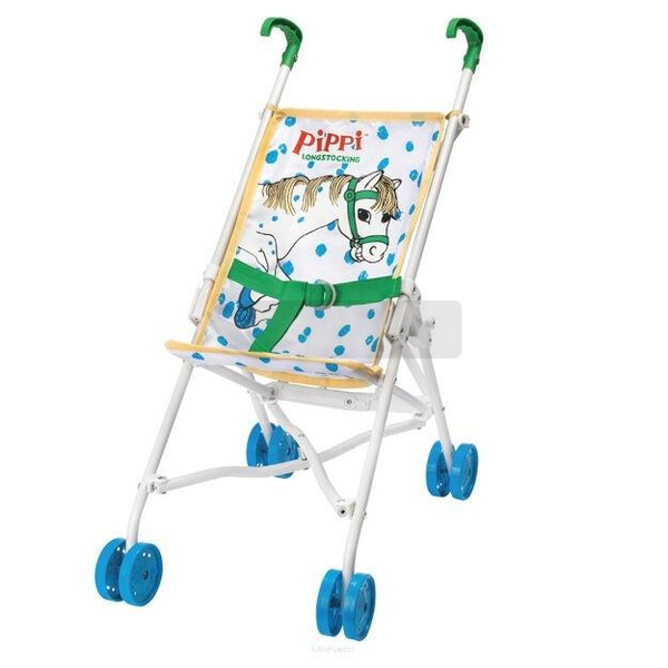 Urocza spacerówka dla lalek została zaprojektowana w Szwecji i starannie wykonana z motywem konika Alfonso na podstawie oryginalnych ilustracji z książek o perypetiach Pippi Langstrumpf.