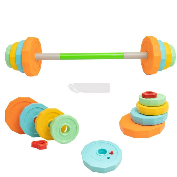 Kolorowa sztanga dla dzieci z możliwością regulacji wagi - aktywna zabawa i sportowe emocje! Ta kolorowa sztanga to świetna propozycja dla dzieci, które lubią ruch, sport i aktywne zabawy. Dzięki możliwości napełniania obciążeń wodą, można łatwo dopasować wagę sztangi do możliwości dziecka. Maksymalna waga po napełnieniu to aż 3 kg! Kolorowe obciążniki i ich pojemności: Pomarańczowy - 700 ml Niebieski - 400 ml Żółty - 250 ml Zielony - 150 ml Całkowita długość sztangi: 75 cm Wiek 3+