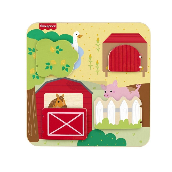Drewniana tablica ze zwierzątkami z farmy od Fisher-Price(R) jest pełna zabawnych niespodzianek! Ta plansza do gry, wykonana z drewna pochodzącego z dobrze zarządzanych źródeł z certyfikatem Forest Stewardship Council (FSC C004225), zawiera 4 drzwiczki, które otwierają się i ukazują różne przyjazne zwierzęta z farmy oraz ich młode.