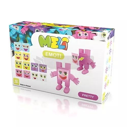 Każde dziecko marzy o własnej kolekcji przyjaznych figurek-emotek. Komplet dwunastu figurek z zabawnymi buźkami, to dawka pomysłów do kreatywnej zabawy samodzielnie lub wespół z przyjaciółmi. Każda buzia wyraża inną mimikę, a zatem inne emocje i humor, co daje możliwość tworzenia dynamicznych scenek. Zróżnicowane postacie, przypominające kolekcjonerskie figurki, służą do niczym nieograniczonych twórczych zabaw. Każda figurka ma indywidualny charakter, przeżywa inne przygody, z jej pomocą tworzyć można odrębne historie. Z pomocą klocków MELI dzieci wyczarują przygodę z księżniczką z zaczarowanego zamku, historię grupki szalonych przyjaciółek, czy scenę z panią nauczycielką czekającą na swoich uczniów w klasie. Nieograniczona dziecięca fantazja pomoże w stworzeniu własnych scenariuszy i szalonych zabaw! Postacie wykonane są z tego samego tworzywa co klocki MELI, natomiast buzie to lekko profilowane żelowe naklejki, dające wrażenie trójwymiarowości, które dziecko może samodzielnie nakleić na figurkę. Przyjazne postacie o niewielkich rozmiarach kształtem przypominają znajomą formę klocka MELI. Całość powstała z w pełni przyjaznych materiałów posiadających atest bezpieczeństwa z wykluczeniem substancji szkodliwych. Taka kolekcja zapewni Twoim dzieciom ogromną porcję inspiracji do twórczej zabawy.