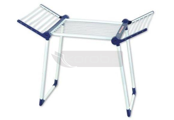 Suszarka do ubrań powstała na licencji firmy Leifheit, dlatego też jest wierną kopią prawdziwej suszarki do ubrań tej marki. Zabawka jest w kolorze białym z granatowymi elementami i można ją także jak prawdziwą suszarkę złożyć do mniejszych rozmiarów, dzięki czemu nie zajmuje dużo miejsca, kiedy dziecko się nie bawi. Zabawka składa się z podwójnych nóg zapewniających jej stabilność oraz właściwej suszarki wyposażonej w dwa składane skrzydła. Wysokość rozłożonej suszarki to ok 50 cm, a łączna szerokość z rozłożonymi bocznymi skrzydłami wynosi około 65 cm. Niska waga i rozmiary zabawki sprawiają, że suszarka ta doskonale spełni swoją rolę do wieszania ubranek lalek, wypranych maskotek, czy nawet suszenia świeżo wypranych ubranek dziecka. Dzięki tej suszarce dzieci nauczą się więcej o codziennych czynnościach w bezpieczny sposób. Zabawka ta została stworzona solidnie i z dbałością o wszystkie szczegóły oryginału.