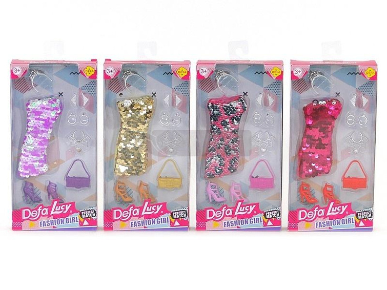 Suknia wieczorowa dla lalki 29cm, z butami i torebką; 23x11x3cm W/B