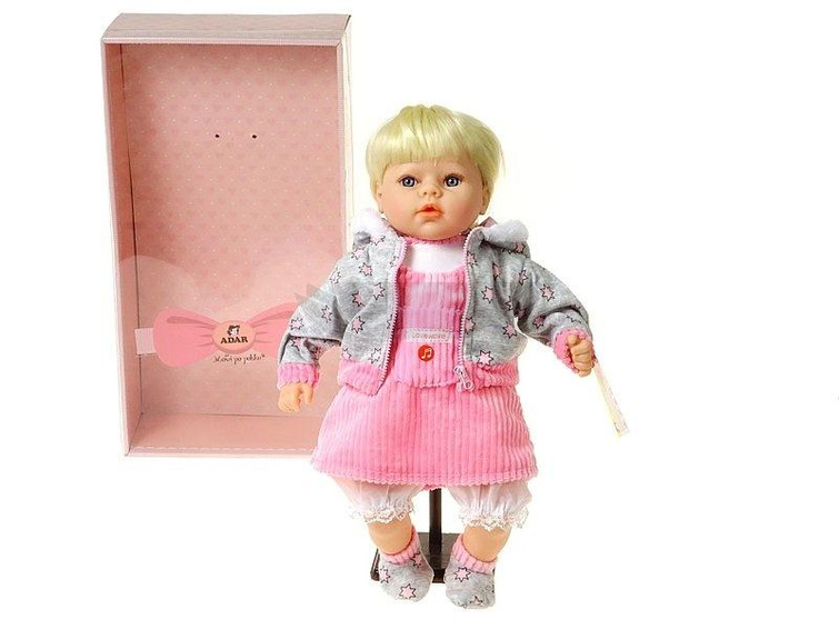 Lalka dziewczynka 45cm, szyte włosy, z dźwiękiem: śpiewa i mówi po polsku, box