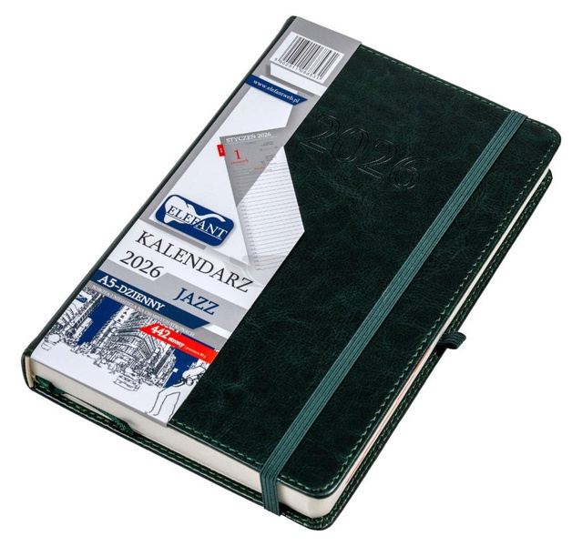 Kalendarz 2026 A5 dzienny Jazz zielony