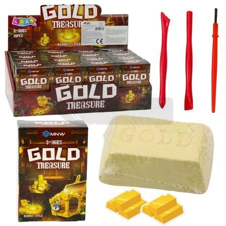 ZESTAW KREATYWNY WYKOPALISKA ZŁOTA Zestaw Gold Treasure to wyjątkowa propozycja dla dzieci zafascynowanych przygodą, tajemnicami oraz światem dawnych cywilizacji. Każde opakowanie zawiera gipsowy blok, w którym ukryto losowy kawałek złota lub minerału - zadaniem dziecka jest samodzielne wydobycie ukrytego "skarbu". Taka zabawa dostarcza nie tylko mnóstwa emocji, ale również rozwija zainteresowania naukami przyrodniczymi i archeologią. Dzięki dołączonym narzędziom - dłutku, młoteczkowi i pędzelkowi - dziecko wciela się w rolę prawdziwego odkrywcy. Proces wydobywania wymaga precyzji, cierpliwości i skupienia, co znakomicie wpływa na rozwój zdolności manualnych, motoryki małej oraz logicznego myślenia. Każde wydobycie może zaskoczyć, ponieważ zawartość jest losowa - co zachęca do dalszej zabawy i kolekcjonowania. Zestaw doskonale sprawdzi się jako prezent, nagroda szkolna, ciekawy upominek urodzinowy lub element zajęć edukacyjnych w przedszkolach i szkołach. Można go wykorzystać zarówno w domu, jak i w grupowych aktywnościach rozwijających kreatywność i współpracę. W opakowaniu zbiorczym znajduje się 16 zestawów. Sprzedawane osobno. SPECYFIKACJA: Rodzaj: zabawka edukacyjna / zestaw do wykopania Funkcje: ręczne wydobywanie złota z gipsowego bloku W zestawie: blok z gipsu, dłutko, pędzelek, młoteczek Wymiary opakowania: 9 x 6,5 x 3,5 cm Wymiary opakowania zbiorczego: 27 x 15,5 x 9,5 cm Zastosowanie: zabawa edukacyjna, rozwijająca motorykę i cierpliwość Materiał: gips, tworzywo sztuczne ZAWARTOŚĆ ZESTAWU: 1 x blok z gipsu z ukrytym kawałkiem złota lub minerałem 1 x dłutko 1 x młoteczek 1 x pędzelek 1 x pudełko