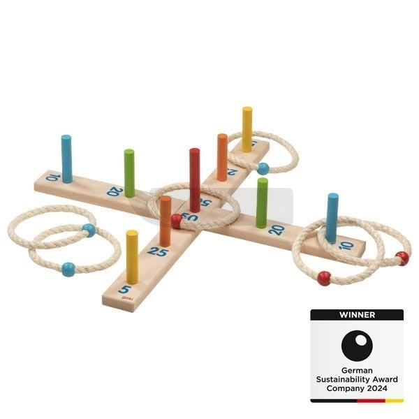 Drewniana podstawa z 6 sizalowymi obręczami do rzucania. Gra rozwija celność, precyzję oraz koordynację ruchową, zachęcając do aktywności fizycznej i zdrowej rywalizacji.