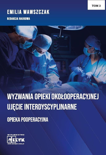Monografia "Wyzwania opieki okołooperacyjnej. Ujęcie interdyscyplinarne. Opieka pooperacyjna " jest zbiorem artykułów autorstwa specjalistów i ekspertów różnych dziedzin oraz młodych badaczy z zakresu medycyny, pielęgniarstwa, położnictwa, diagnostyki laboratoryjnej, psychologii i fizjoterapii. Przedstawiona tu problematyka dotyczy standardów w opiece pooperacyjnej w odniesieniu do wielu aspektów życia człowieka, które w obliczu choroby ulegają licznym zmianom. W trosce o najlepsze dobro chorego wymagają jednak gruntownej wiedzy i dużej wrażliwości, aby sprostować współczesnym oczekiwaniom. Dr nauk o zdrowiu Emilia Wawszczak Recenzja naukowa: prof. dr hab. n. med. Maciej Kielar dr n. med. Monika Sadowska Warszawa 2025 Spis treści: Zadania pielęgniarki w zakresie monitorowania i terapii bólu pooperacyjnego Metody oceny bólu pooperacyjnego wśród noworodków i wcześniaków Umiejscowienie kontroli bólu i strategie radzenia sobie z nim wśród położnic po cięciu cesarskim Zapewnienie komfortu termicznego pacjentom po zabiegach chirurgicznych Zastosowanie kontrolowanej hipotensji w zabiegach otorynolaryngologicznych Prehabilitacja i profilaktyka powikłań pooperacyjnych jako wyzwania fizjoterapii w chirurgii Opieka nad osobą poparzoną w oddziale intensywnej terapii Stomia jelitowa - powikłania pooperacyjne i funkcjonowanie pacjentów po zabiegu operacyjnym - przegląd piśmiennictwa Opieka okołooperacyjna nad pacjentem zakwalifikowanym do laparoskopowej rękawowej resekcji żołądka - studium przypadku Ocena wiedzy chorych na temat diety po przebytym ostrym zapaleniu trzustki. Edukacyjna rola pielęgniarki chirurgicznej Problemy pielęgnacyjne pacjenta z nowotworem pęcherza moczowego i chorobami współistniejącymi Opieka pooperacyjna nad pacjentem po zabiegu przetoki odbytu w przebiegu powikłanym Opieka pooperacyjna położnej po laparoskopii w ginekologii dziecięcej Histerektomia - opieka okołooperacyjna w świetle aktualnych badań Muzykoterapia - skuteczność w redukcji bólu w okresie okołooperacyjnym
