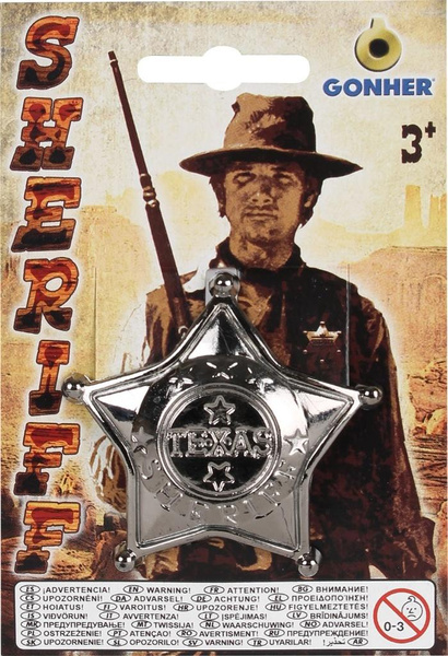 Plastikowa odznaka szeryfa. Długość: 5,5cm. Wiek: 3+. Szt./karton: 50