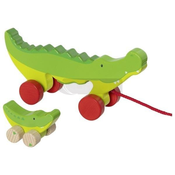 Drewniane krokodyle, które zabawnie poruszają się podczas ciągnięcia. Idealne do zachęcania maluchów do stawiania pierwszych kroków oraz rozwijania dużej motoryki. Kolorowe detale pobudzają ciekawość i radość z samodzielnego przemieszczania się.