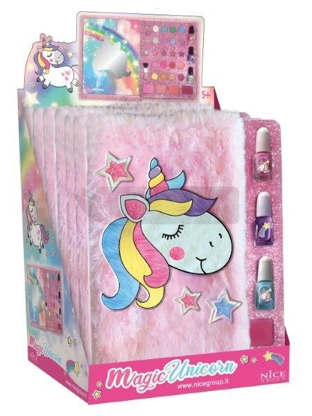 Paleta do makijażu w rozmiarze książki z futrzaną okładką z motywem jednorożca. Gra i makijaż dla słodkiej zabawy!