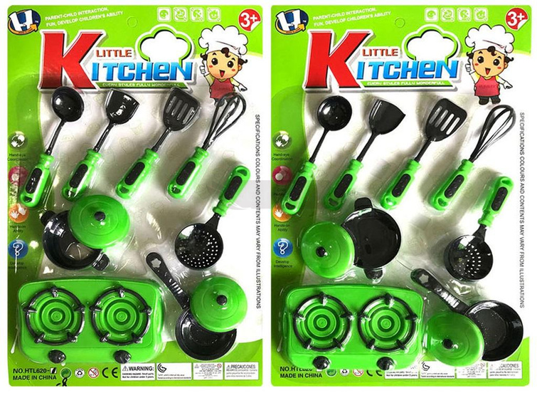 10 elementowy zestaw naczyń z kuchenką oraz akcesoriami.