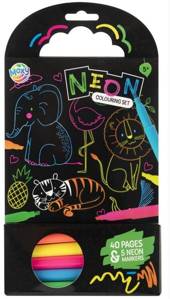 Książka do kolorowania +5 neonowych markerów Zwierzęta