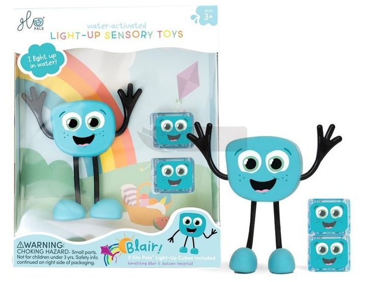 Glo Pals, Zestaw postać Blair oraz 2 kostki sensoryczne świecące w wodzie, w kolorze turkusowym.