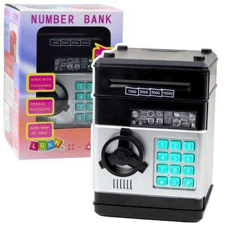 CZARNY SEJF SKARBONKA NA MONETY I BANKNOTY Z KODEM PIN CZARNY Nowoczesna skarbonka bankomat w formie sejfu to świetny sposób na połączenie nauki oszczędzania z zabawą i codzienną interakcją. Ten niewielki, ale funkcjonalny gadżet wyróżnia się elegancką, czarną obudową oraz praktycznymi funkcjami, które czynią go wyjątkowym w swojej kategorii. Dzięki efektom świetlnym i dźwiękowym każda wpłata staje się dla dziecka atrakcyjnym rytuałem, który nie tylko bawi, ale również uczy odpowiedzialności finansowej. Skarbonka została wyposażona w mechanizm automatycznego wciągania banknotów oraz klasyczną szczelinę na monety umieszczoną w górnej części urządzenia. To połączenie pozwala na gromadzenie oszczędności w różnych formach, co czyni produkt uniwersalnym i funkcjonalnym. Dostęp do zawartości sejfu możliwy jest po wpisaniu czterocyfrowego kodu PIN - domyślnie ustawionego jako 0000. Użytkownik ma jednak możliwość samodzielnej zmiany hasła na indywidualne, co dodatkowo zwiększa poczucie prywatności i kontroli nad swoimi oszczędnościami. Po poprawnym wprowadzeniu kodu drzwiczki sejfu automatycznie się otwierają, a wbudowany system przypomina o ich zamknięciu po upływie 20 sekund. To praktyczne rozwiązanie zapobiega przypadkowemu pozostawieniu sejfu otwartego i uczy dziecko systematyczności oraz dbałości o własne rzeczy. Dodatkowym urozmaiceniem jest możliwość zmiany klasycznych sygnałów dźwiękowych na komunikaty głosowe w języku angielskim. Ta funkcja nie tylko wzbogaca zabawę, ale może również wspomóc dziecko w osłuchaniu się z językiem obcym i uatrakcyjnić codzienne korzystanie ze skarbonki. Dzięki przemyślanej konstrukcji i nowoczesnym funkcjom, sejf-skarbonka to nie tylko praktyczne narzędzie do przechowywania pieniędzy, ale także doskonały prezent, który rozwija nawyki oszczędzania już od najmłodszych lat. SPECYFIKACJA: Wymiary sejfu: 19,5 x 13 x 12 cm Wymiary opakowania: 20 x 14,5 x 14,5 cm Zasilanie: 3 x AA 1,5V (brak w zestawie) Przyjmuje: banknoty (automatycznie), monety (od góry) PIN: domyślny 0000, możliwość ustawienia własnego ZAWARTOŚĆ ZESTAWU: 1 x sejf skarbonka czarny 1 x instrukcja obsługi