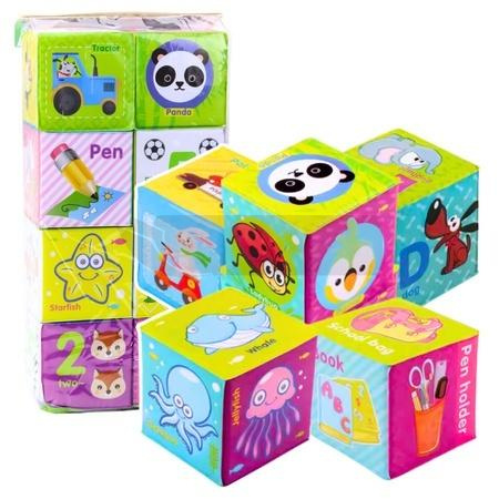 KLOCKI KOLOROWE KOSTKI EDUKACYJNE Zestaw klocków edukacyjnych to doskonała propozycja dla najmłodszych dzieci, które uczą się przez zabawę. W zestawie znajduje się 8 miękkich, kolorowych kostek o wymiarach 7 x 7 cm, które wykonane zostały z bezpiecznego, delikatnego w dotyku materiału. Każda kostka posiada inną grafikę - mogą to być literki, cyferki lub obrazki z nazwami w języku angielskim, co wspomaga rozwój językowy i poznawczy malucha. Klocki można układać, zgniatać, rzucać, poznawać dotykiem i obserwować wzory oraz kolory, co stymuluje zmysły dziecka oraz wspomaga rozwój motoryki małej. Klocki zapakowane są w przezroczyste opakowanie foliowe, które pozwala zobaczyć zawartość jeszcze przed otwarciem. SPECYFIKACJA: Wymiary jednej kostki: 7 x 7 cm Materiał: miękki, bezpieczny materiał Funkcje edukacyjne: obrazki, litery, cyfry, angielskie słówka Rodzaj: Zabawka sensoryczna Materiał: Tkanina, miękkie wypełnienie, tworzywo ZAWARTOŚĆ ZESTAWU: 8 miękkich kostek Obrazki edukacyjne na każdej kostce Opakowanie foliowe