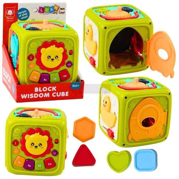 INTERAKTYWNA KOSTKA EDUKACYJNA DLA MALUCHA ZIELONA LEW Kolorowa interaktywna kostka edukacyjna to wspaniała zabawka stworzona z myślą o najmłodszych dzieciach od 18. miesiąca życia. Każda ścianka tej wszechstronnej zabawki oferuje inny sposób zabawy, rozwijając motorykę, logiczne myślenie, koordynację wzrokowo-ruchową i zdolności poznawcze. Na kostce znajdują się elementy muzyczne - między innymi klawisze z dźwiękami oraz przyjazny lew, który zachęca do interakcji, a także sorter kształtów, ruchome drzwi, obracane elementy i wesołe grafiki ze zwierzątkami. Zabawka odtwarza dźwięki i melodie, które pobudzają zmysły i stymulują rozwój słuchu u najmłodszych. Kostka została wykonana z bezpiecznych, zaokrąglonych materiałów, odpowiednich dla dzieci. Ma kompaktowy rozmiar, dzięki czemu świetnie sprawdza się w domu, w podróży czy jako prezent na każdą okazję. SPECYFIKACJA: Wymiary kostki: 12 cm x 12 cm x 12 cm Wymiary opakowania: 17 cm x 13,5 cm x 13,5 cm Zasilanie: 3 x 1.5V AA (brak w zestawie) Materiał: tworzywo sztuczne ZAWARTOŚĆ ZESTAWU: Interaktywna kostka edukacyjna Kolorowe elementy do sortowania Oryginalne opakowanie