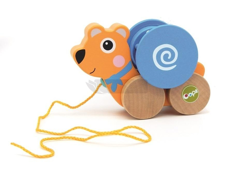 Zabawka do ciągnięcia Miś to zabawka aktywizująca dziecko, które dopiero uczy się chodzić. Uroczy Miś będzie motywacją do nauki stawiania pierwszych kroków. Dodatkowo na grzbiecie zwierzątka znajduje się zdejmowana grzechotka, która podczas ciągnięcia zabawki obraca się wydając przyjemne dźwięki. Zabawka wykonana jest w całości z wysokiej jakości drewna, a jej opakowanie z kartonu przez co jest przyjazna środowisku.