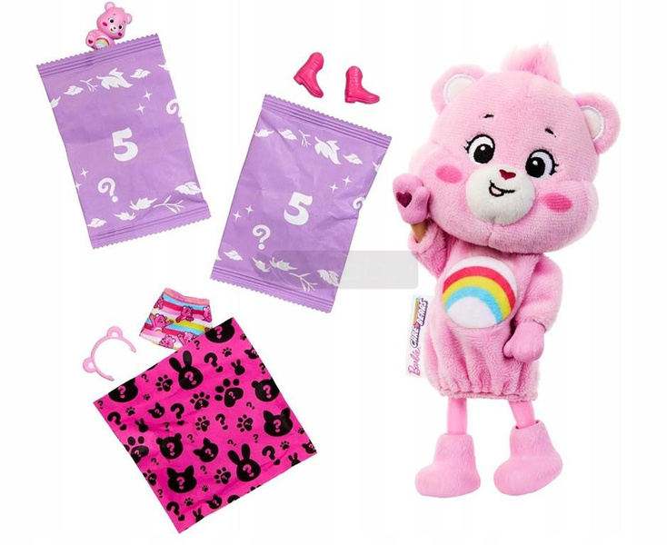 Dzięki 6 niespodziankom rozpakowywanie zestawów Barbie Chelsea Cutie Reveal z serii Troskliwe Misie zapewnia mnóstwo radości; odkrywaj miękki kostium, lalkę oraz akcesoria Odpakuj lalkę, aby znaleźć jedną z trzech postaci z „Troskliwych Misiów”: Misię Wesołe Serce, Miśkę lub Gderka; Jak wygląda Twoja lalka? Zdejmij kostium, aby odkryć małą lalkę Chelsea z długimi włosami o kolorowych pasemkach Otwórz 3 torebki-niespodzianki, aby znaleźć ubranko i akcesoria: uroczą spódniczkę, parę bucików, opaskę do włosów i malutkiego Troskliwego Misia Przebieraj i stylizuj lalkę Chelsea – góra kostiumu staje się obszerną kurtką z miękkiego materiału; dodatkowo głowa kostiumu zmienia się w legowisko dla małego Troskliwego Misia Ta seria lalek Barbie Chelsea Cutie Reveal to odpowiedni prezent dla dzieci od 3 do 7 lat, zwłaszcza fanów „Troskliwych Misiów” i tych, które uwielbiają dzielić się, dbać o innych i być razem; lalki są sprzedawane oddzielnie