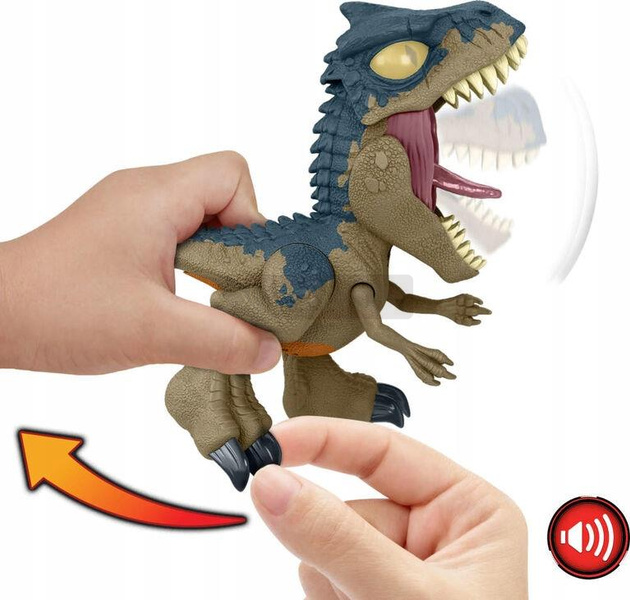 Przygotuj się na wartką akcję i przygody wprost ze świata Jurassic World! Ten allozaur, zainspirowany animowanym serialem Netflixa Jurassic World: Teoria chaosu, zachwyci młodych fanów dinozaurów ciągłym ryczącym działaniem, a także zabawą w karmienie z zabawnymi dźwiękami. Przesuwaj nogę coraz dalej do tyłu, a ryczące dźwięki staną się bardziej intensywne, gdy szczęka będzie się otwierać coraz szerzej. Puść nogę, a otwór szczęki stanie się mniejszy, a dźwięki mniej intensywne. W zestawie znajduje się akcesorium w kształcie „steka”, aby zaspokoić głodnego mięsożercę, wywołując dźwięki chrupania, a nawet głośne beknięcia lub beknięcia Wygląd allozaura jest łatwo rozpoznawalny w animowanym serialu Netflixa, z charakterystycznym zdobieniem po bitwie i groźnym lewym okiem. To zabawny prezent dla miłośników dinozaurów w wieku od 4 lat.
