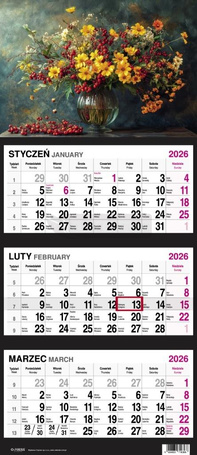 Kalendarz 2026 trójdzielny Bukiet