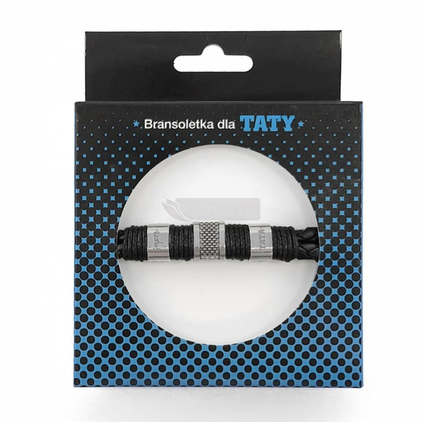 Bransoletka dla Taty. Długość bransoletki: 21,0 cm. Materiał: tworzywo sztuczne, stal nierdzewna. Z dedykacją na 2 charmsach.
