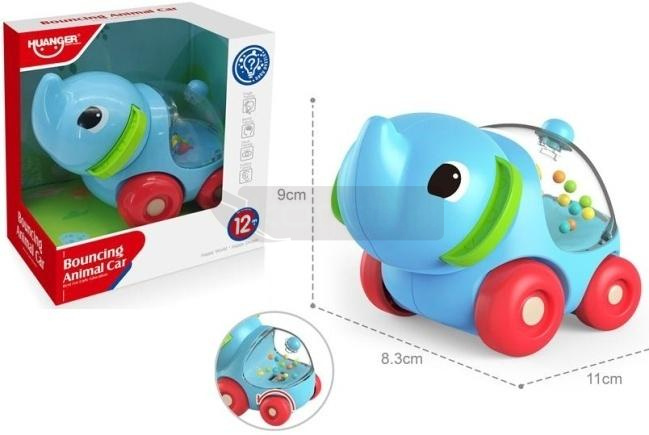 HUANGER Bouncing Animal Car - Interaktywny Słonik z Podskakującymi Kulkami Zapewnij swojemu dziecku godziny radosnej zabawy z HUANGER Bouncing Animal Car! Ten uroczy jeździk w kształcie niebieskiego słonika to coś więcej niż zwykła zabawka. Posiada innowacyjny, przezroczysty zbiornik wypełniony kolorowymi kuleczkami, które wesoło podskakują i grzechoczą z każdym pchnięciem lub jazdą, intrygując malucha i zachęcając go do dalszej aktywności. Zabawka jest idealna dla dzieci od 12 miesiąca życia. Jej ergonomiczny kształt i wygodne kółka ułatwiają pchanie, wspierając rozwój motoryki dużej, koordynacji ręka-oko oraz zachęcając do raczkowania i pierwszych kroków. Żywe kolory i sympatyczny design słonika stymulują zmysły wzroku, a dźwięki podskakujących kulek rozwijają słuch. Wykonany z bezpiecznych, wysokiej jakości materiałów, jest trwały i odporny na dziecięce przygody. Kompaktowe wymiary (11 cm długości, 8.3 cm szerokości, 9 cm wysokości) sprawiają, że jeździk jest łatwy do chwytania i manipulowania przez małe rączki. HUANGER Bouncing Animal Car to doskonały prezent, który łączy edukację z beztroską zabawą.
