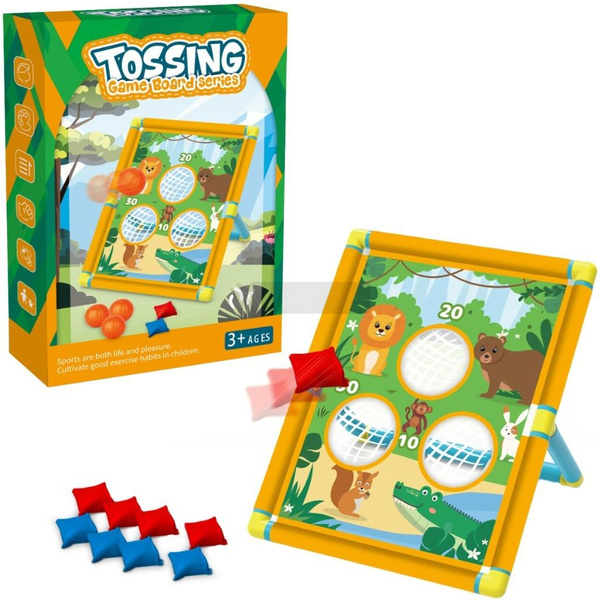 Tossing Game Board Series - Interaktywna Gra Zręcznościowa Rzucanie do Celu ze Zwierzątkami Wprowadź element zabawy i zdrowej rywalizacji do świata Twojego dziecka z naszą wesołą grą zręcznościową Tossing Game Board Series! Ta kolorowa i interaktywna zabawka zapewni mnóstwo śmiechu i pomoże w rozwijaniu koordynacji wzrokowo-ruchowej oraz precyzji. Kluczowe cechy produktu: Zabawna gra zręcznościowa: Celem gry jest trafienie woreczkami z piaskiem do otworów na planszy, z których każdy oznaczony jest inną liczbą punktów (10, 20, 30). Kto zdobędzie najwięcej punktów, wygrywa! Motyw zwierzątek: Plansza zdobiona jest uroczymi ilustracjami lewa, niedźwiedzia, małpki, wiewiórki, królika i krokodyla, co dodatkowo zachęca dzieci do zabawy. Rozwój umiejętności: Gra w rzucanie do celu doskonale ćwiczy koordynację ręka-oko, celność, precyzję ruchów oraz umiejętność strategicznego myślenia. Dla całej rodziny: To świetna zabawa dla dzieci, rodziców i dziadków! Idealna na rodzinne popołudnia, imprezy urodzinowe i spotkania z przyjaciółmi. Bezpieczne materiały: Zabawka wykonana jest z bezpiecznych i trwałych materiałów, odpowiednich dla dzieci powyżej 3 roku życia. Łatwy montaż i przechowywanie: Lekka konstrukcja i składane nóżki ułatwiają montaż, demontaż i przechowywanie gry. Można ją zabrać ze sobą wszędzie! W zestawie: Plansza do gry z motywem zwierzątek oraz 8 kolorowych woreczków w dwóch kolorach z piaskiem. Wielkość opakowania : 37x25x6 Jak grać? 1. Ustaw planszę na stabilnej powierzchni. 2. Ustalcie odległość, z jakiej gracze będą rzucać woreczkami. 3. Na zmianę rzucajcie woreczkami, starając się trafić w otwory z jak największą liczbą punktów. 4. Po wszystkich rundach zliczcie punkty. Gracz z najwyższą liczbą punktów wygrywa! Podaruj swojemu dziecku mnóstwo radości i aktywnej zabawy z interaktywną grą zręcznościową Tossing Game Board Series! To doskonały sposób na spędzenie czasu w gronie rodziny i przyjaciół, rozwijając przy tym ważne umiejętności.